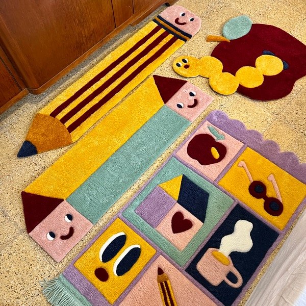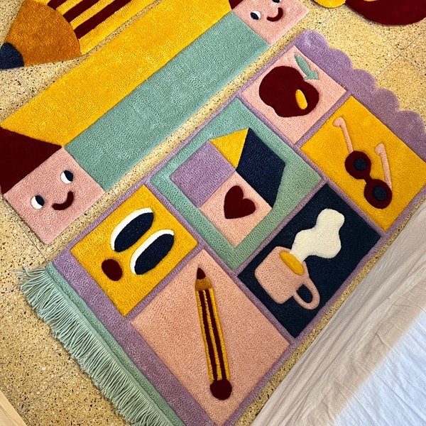 mide 1.20x0,60 esta realizada totalmente a mano con la técnica del handtufting, usando lanas acrílicas!