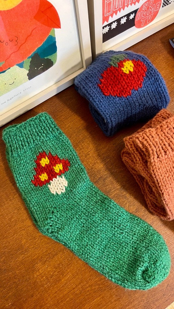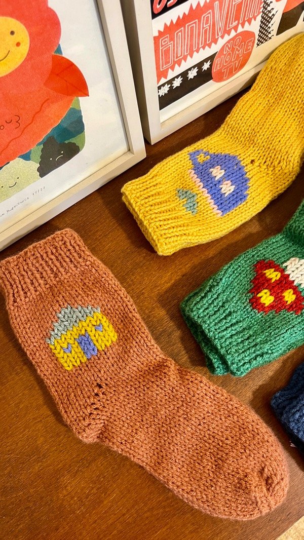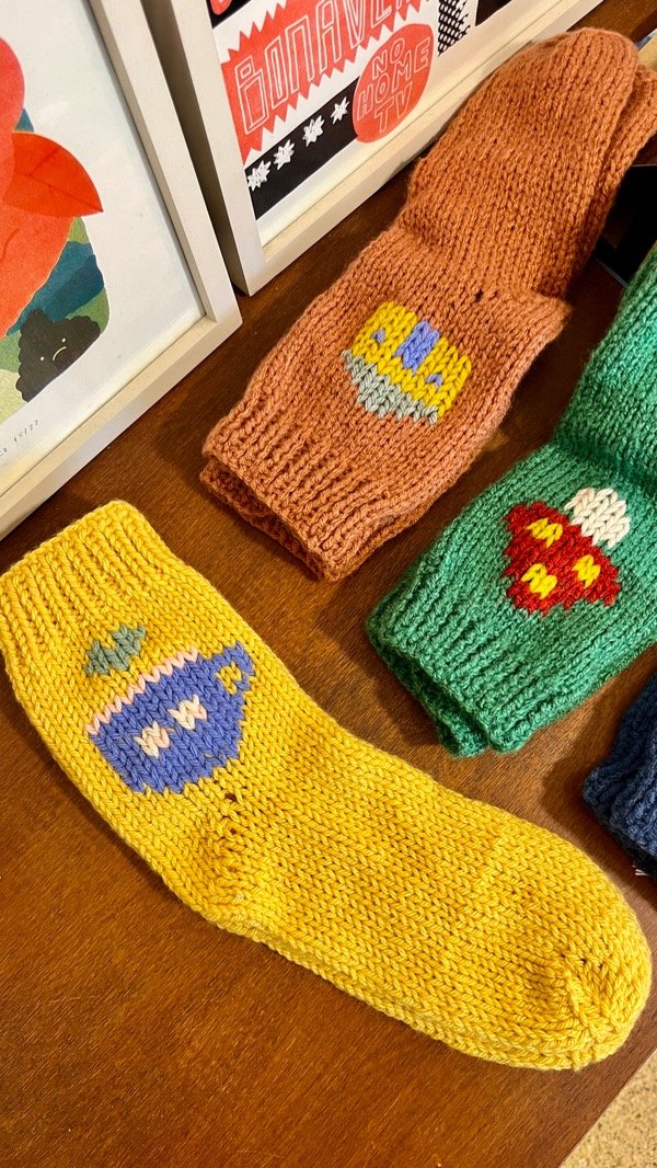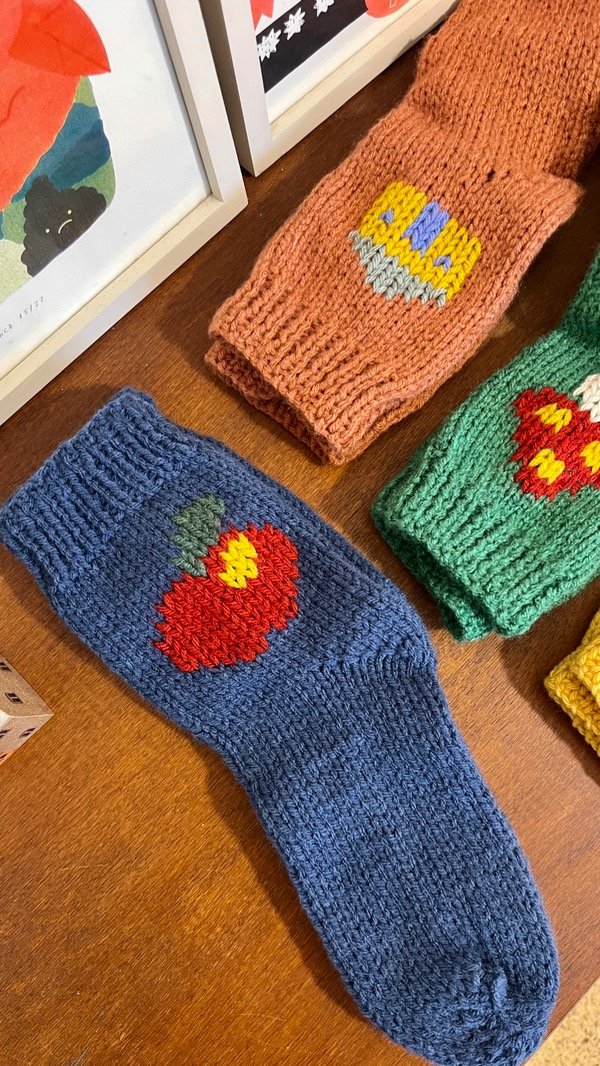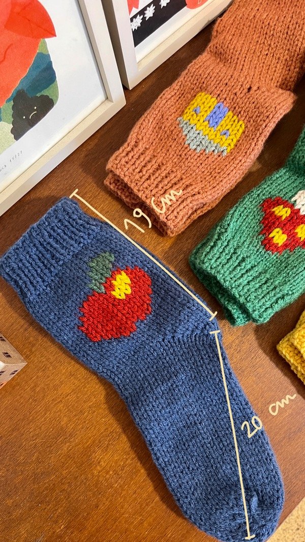 Estas medias están tejidas por Marisa y bordadas por nosotras! Cada par es único, por su color y dibujo :)